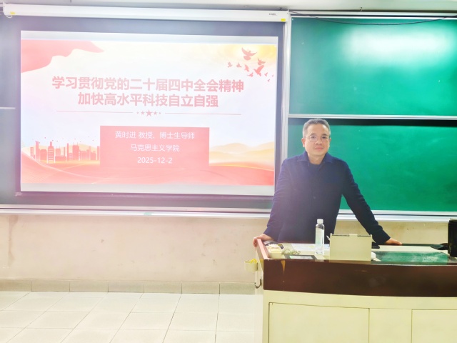 为深入学习贯彻党的二十届四中全会精神,近日,565net必赢客户端召开专题学习会,邀请上海市科教党委百名专家宣讲团成员、学校马克思主义学院黄时进教授作题为“学习贯彻党的二十届四中全会精神——加快高水平科技自立自强”专题辅导报告。学院领导班子、全体教师共同参加学习。